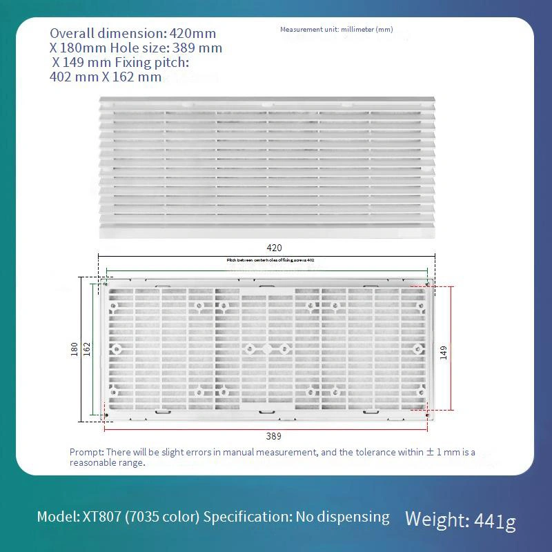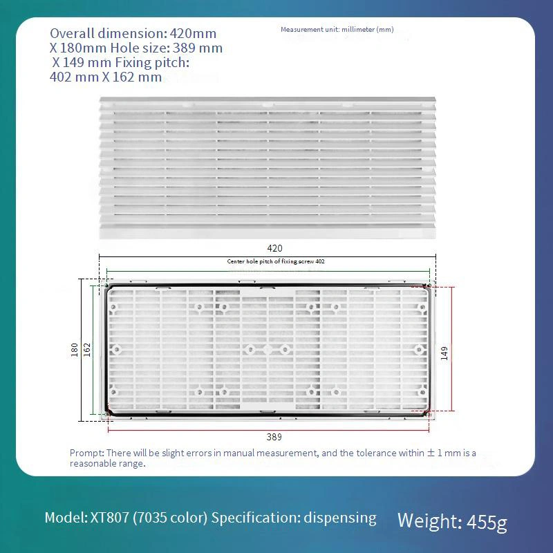 دارای یک طراحی مش فیلتر قابل تعویض برای نگهداری آسان و جایگزینی روزانه است که به طور قابل توجهی هزینه های عملیاتی بلند مدت را کاهش می دهد. ساختار فریم در یک رنگ استاندارد خاکستری 7035 در دسترس است. این ماده از یک ماده ABS ساخته شده است که مقاومت در برابر تغییر شکل عالی را ارائه می دهد و از ثبات طولانی مدت اطمینان می دهد.
